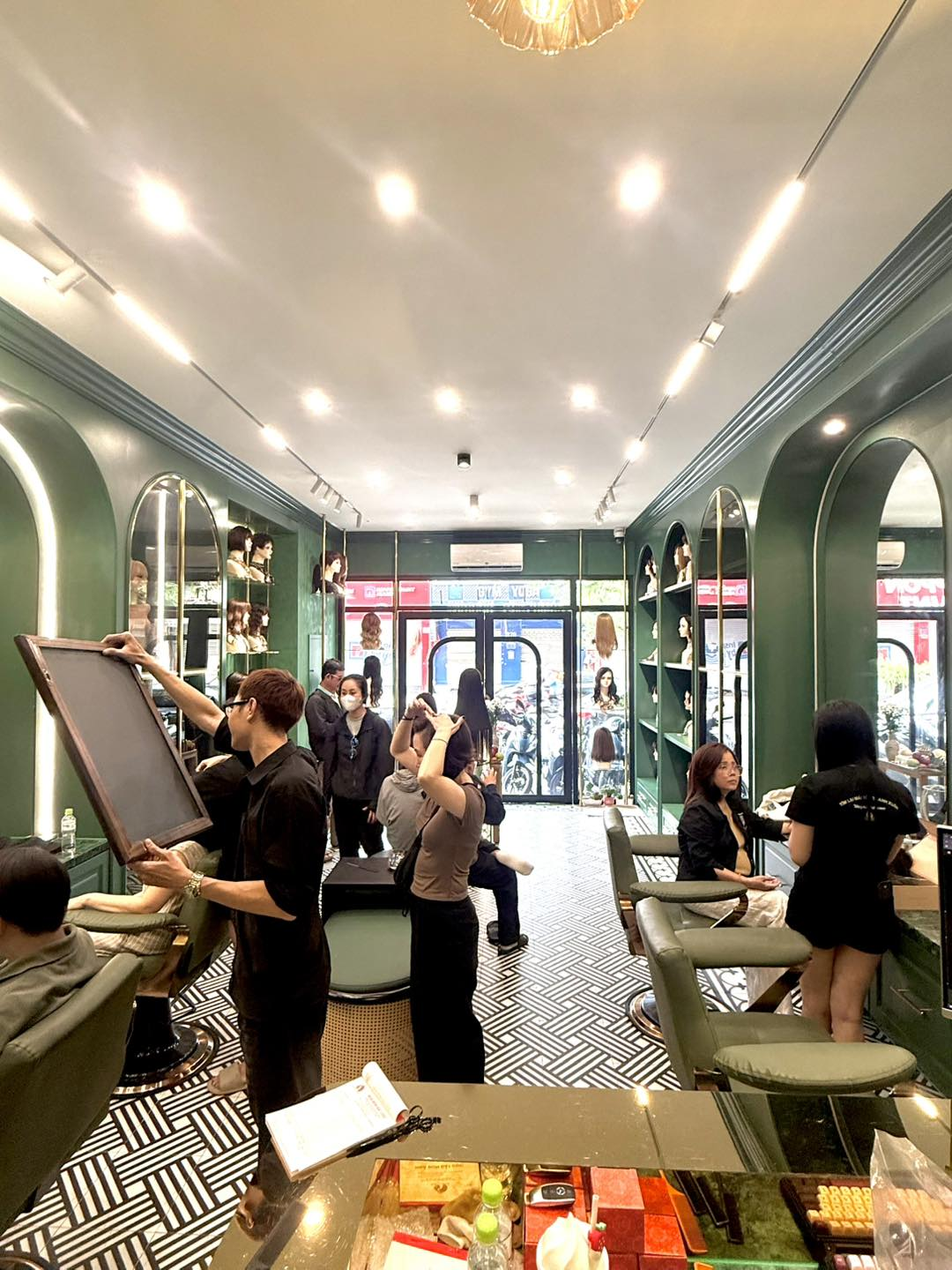 Không gian tại đây được thiết kế theo hướng riêng tư, phù hợp với chị em trung niên hoặc khách hàng muốn thử tóc thoải mái mà không bị vội vàng. Điểm đánh giá cao là quy trình tư vấn khá bài bản: khách được đo vòng đầu cẩn thận, thử nhiều form tóc khác nhau và được chỉnh sửa nhẹ để ôm đầu tự nhiên nhất.
